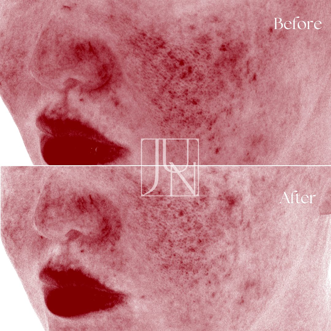 こちらの方はトーニングモードで全体的に施術した後、コンタクトモードでクレーター箇所を重点的に治療。一回の施術でもここまで改善されました。