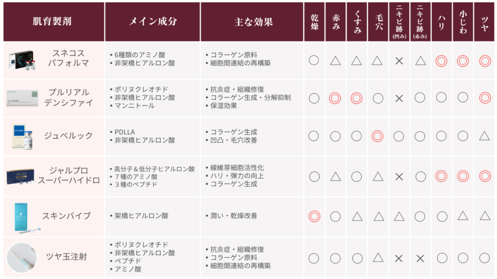 肌育製剤早見表