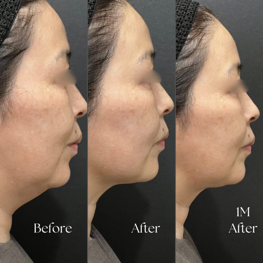 冷却機能により、表面の皮膚にはほとんどダメージを与えずに、内部のたるんだ組織を若かったころの弾力のある組織に戻すことで、立体的な肌を引き締めていくことができますc。