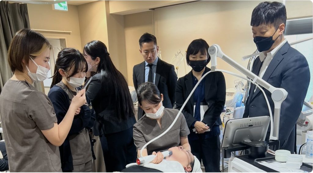 XERF導入時には、ジュンクリニックグループの看護師が一堂に会し、韓国のKey Dr.であるカイザー先生から直接、技術指導を受けました。